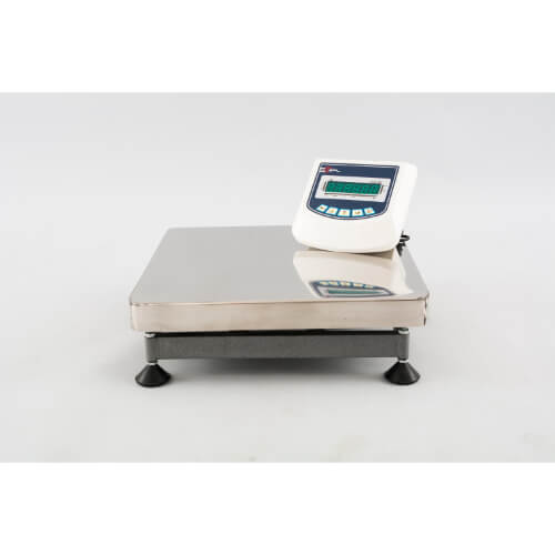 Electronic platform scale in stainless steel. Capacity 50 kg to 1200 kg, accuracy 5 g to 200 g.